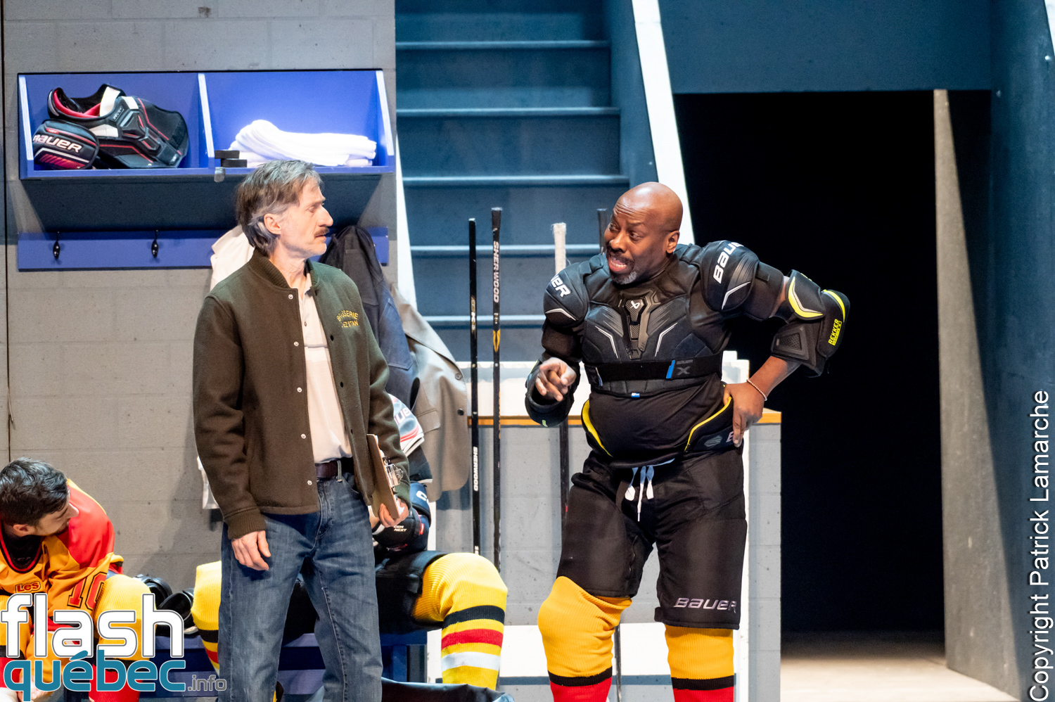 Grâce à un travail scénique minutieux et à l’utilisation de projections visuelles, l’illusion d’un véritable match de hockey fonctionne étonnamment bien. Les écrans géants sont utilisés intelligemment pour amplifier certaines actions et donner au public l’impression d’assister à une rencontre sportive en direct.